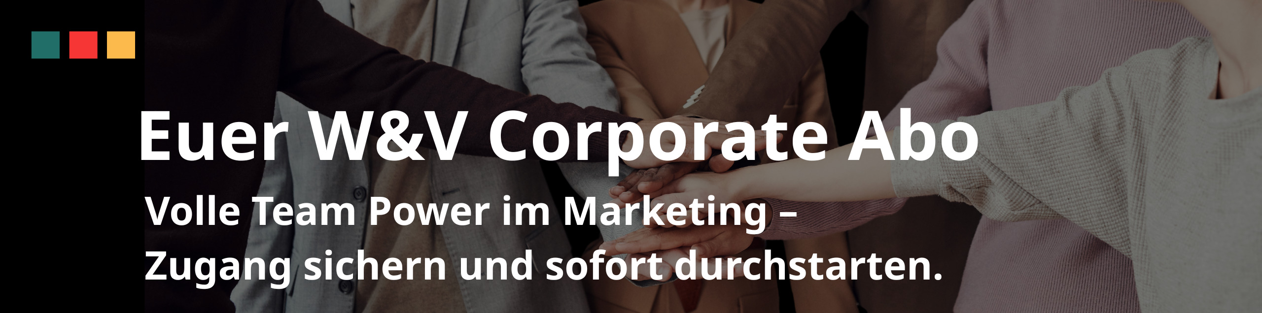Das W&V Corporate Abo ist der digitale Zugang zu exklusiven W&V Inhalten für komplette Unternehmen oder Abteilungen. KI, neue Kanäle, Performance-Druck – Marketing und Commerce verändern sich rasant. Wer da mithalten will, braucht mehr als gute Ideen: nämlich verlässliche Insights, konkrete Cases und strategische Einordnung. Genau das bekommt ihr mit dem W&V Corporate Abo. Dein gesamtes Team bleibt damit am Puls der Branche – informiert, inspiriert und entscheidungsstark. Premium-Inhalte, Reports und Analysen, die strategisch weiter bringen, geben echten Vorsprung.